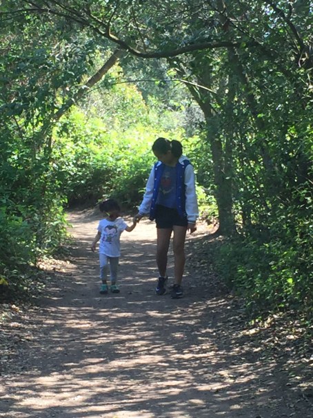 Today we started out our day with a walk at El Dorado Nature Centure. The trees, water, and rustling of the leaves all bring me back to my childhood, growing up on the dairy with a pond. Sofia loves walking the trails with me while Luc rests peacefully in my ring sling. This morning we were joined by big sister and papa! Funny moments: Big sister running from a squirrel and big sister sending little sister to walk in front of a lizard.